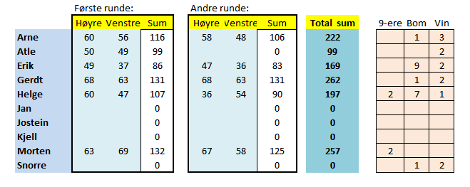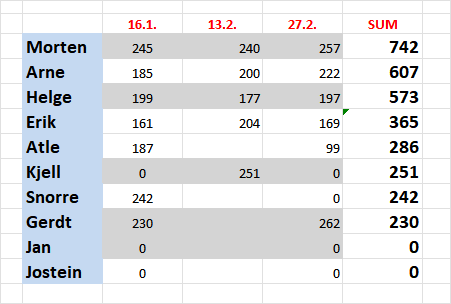 Arne ble nr 3 med 222 poeng, mens vi andre ble